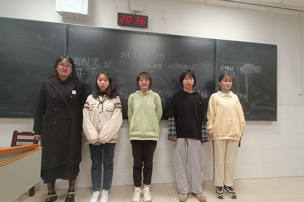 活动伊始,郭路将候选人名单写至黑板,并讲述此次推优入团的意义及重要性。接下来,由候选人依次发言,表达各自想要加入团校的决心,由同学们依次进行投票。最后,周胤宏、周鹏程、董敏、杨扬,代晋瑗五人从精选队伍中脱颖而出,加入团校进行学习。