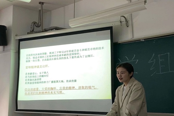 此次活动围绕学习雷锋精神展开。欧阳唯一以化工院优秀员工尹彦征发明红瓷器为例,启发团学组织成员作为化工院的员工干部,要做好岗位上的螺丝钉,乐于奉献、勇于担当,要结合自己专业所学,勇做民族脊梁。欧阳唯一讲述了自己大学以来学习和工作中的故事,提出新时代青年要树立终身学习的意识,要清楚规划自己的人生。活动最后,欧阳唯一阐述了对“团结赤子心,委以青云志”的理解,表示团学组织的各个部门应该团结互助,共同交流,开展具有化工院特色的主题活动,做好引领组织思想,建设校园文化的工作。