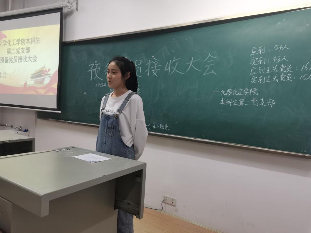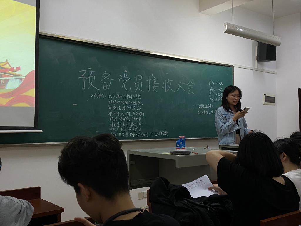 会议开始,由邓雨等4名同志依次进行自我总结及思想汇报,并向支部提出申请,再由入党介绍人宣读意见。支部同志对4位同志的总结及汇报发表了意见,并对应提出了改进建议。经党支部成员考察并表决,同意接收邓雨等4名同志为中共预备党员。