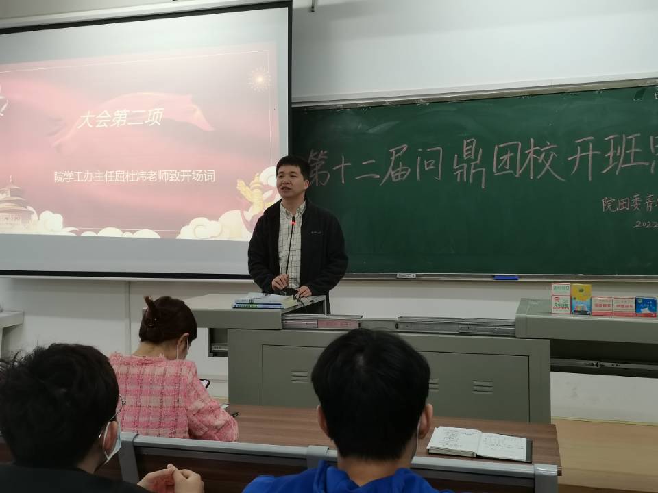 会议在主持人胡筱晨致开场词后正式开始。屈杜炜发言指导,进行开班介绍,并提出作为新时代的青年,要有责任感和使命感,积极参加各种活动。同时认真对待理论知识学习,并且介绍了团校的具体事宜及注意事项。