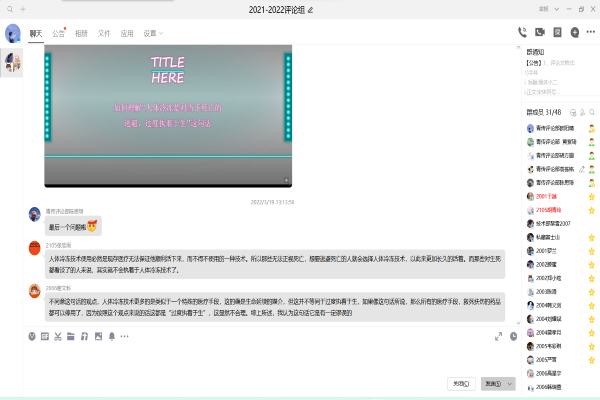 (通讯员 袁栋铭)3月19日中午12时30分,365英国上市集团评论组举办评论活动,通过腾讯会议,开展了主题为“关于永恒的追逐与代价——人体冷冻技术及背后的伦理学”的线上评论活动,此次活动由化工院胡方圆主持,评论组全体成员参加。