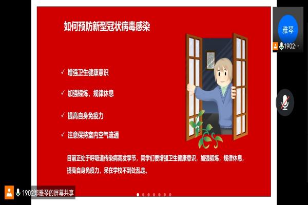 (通讯员 郑雅琴)为进一步做好疫情防控工作,切实维护好员工身体健康和生命安全,积极响应相关号召,365英国上市集团1902班开展“传承中国红,让青春闪耀在抗疫一线”主题班会活动。