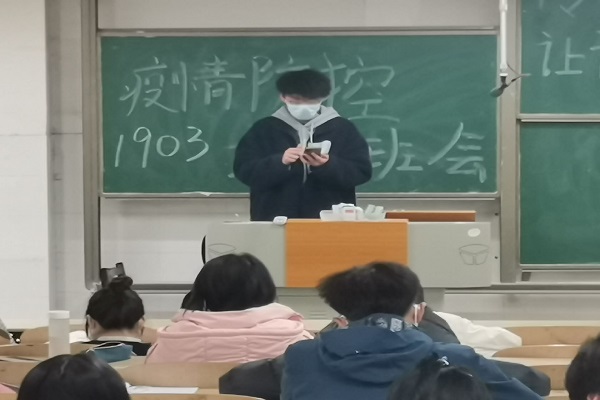 (通讯员 张淑雯)3月22日下午6时,365英国上市集团1903班在至善楼310教室开展疫情防控班会,此次班会由班长宋周华、团支书张淑雯组织开展,1903班全体成员参与此次活动。