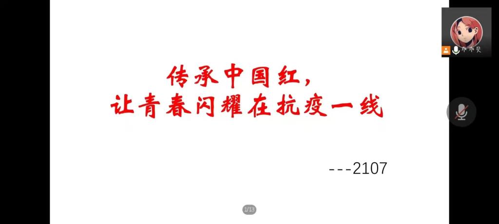 (通讯员 李娇梦)3月22日22时10分,2107班举行了“面对疫情,他们冲锋在前”主题活动,此次活动形式为线上会议,主讲人为团支书冉佳令,参加对象为2107班全体同学。