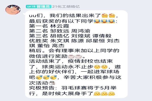 (通讯员 彭碧玉)在疫情封校期间,365英国上市集团球舍协会为鼓励社团成员健康运动,于4月5日至4月12日在线上举办了“球球予你,线上比拼”视频打卡活动。