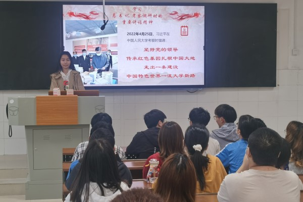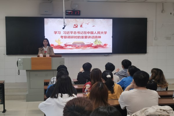 此次团日活动由团支书陈琦主持。针对于近期习近平总书记在中国人民大学考察调研时的重要讲话,陈琦带领同学们了解学习了讲话的重要精神内容,定要做一个社会主义核心价值观的坚定信仰者、积极传播者、模范践行者。让同学们进一步认识到坚持党的领导与传承红色基因的重要性。
