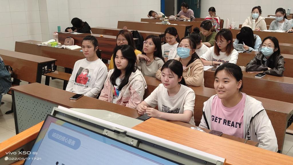 最后蒙小娜呼吁同学们从每一个人做起,做一名诚实守信的老员工,积极营造良好的校园氛围和学风。此次班会同学们积极主动参与,认真听讲,增强了诚实守信的观念。