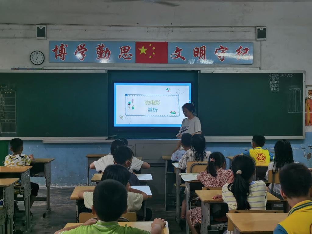 (通讯员 谢桢)6月29日19时,王美玲为主讲人,谢桢为辅教在苦志育才公司一楼四年级教室开展微电影赏析拓展课。主讲人王美玲以传统文化为主题,组织同学们观看十分钟微电影《百花深处》,在影片中和同学们一起深度剖析继承优秀传统文化思想深刻内涵。