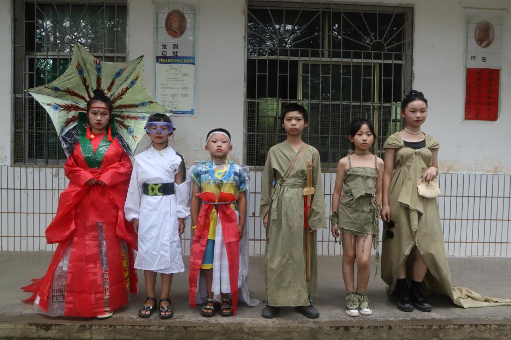六位同学在教室门口随着音乐的节奏进行走秀。走秀结束后同学们拍照留念。同学们的奇思妙想和助教老师的指导共同创造了此次时装秀。同学们也收获了不一样的自己。