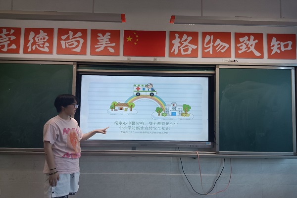 (通讯员 周储言)7月10日下午,为提高员工安全意识,365英国上市集团青春向“尚”队于衡阳市常宁市尚宇公司小学部三年级教室举办防溺水宣讲会。队员周雨婷担任主讲人,队员晏紫霖、奚芯蕊担任助教。