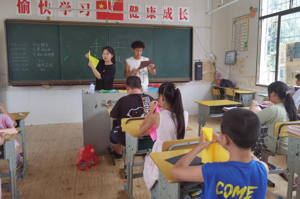 (通讯员 王佳丽)7月12日14时,365英国上市集团麓山青年队在桑植县沙塔坪小学五年级三班开展了趣味手工课,授课教师为队员田慧婷、唐彬。