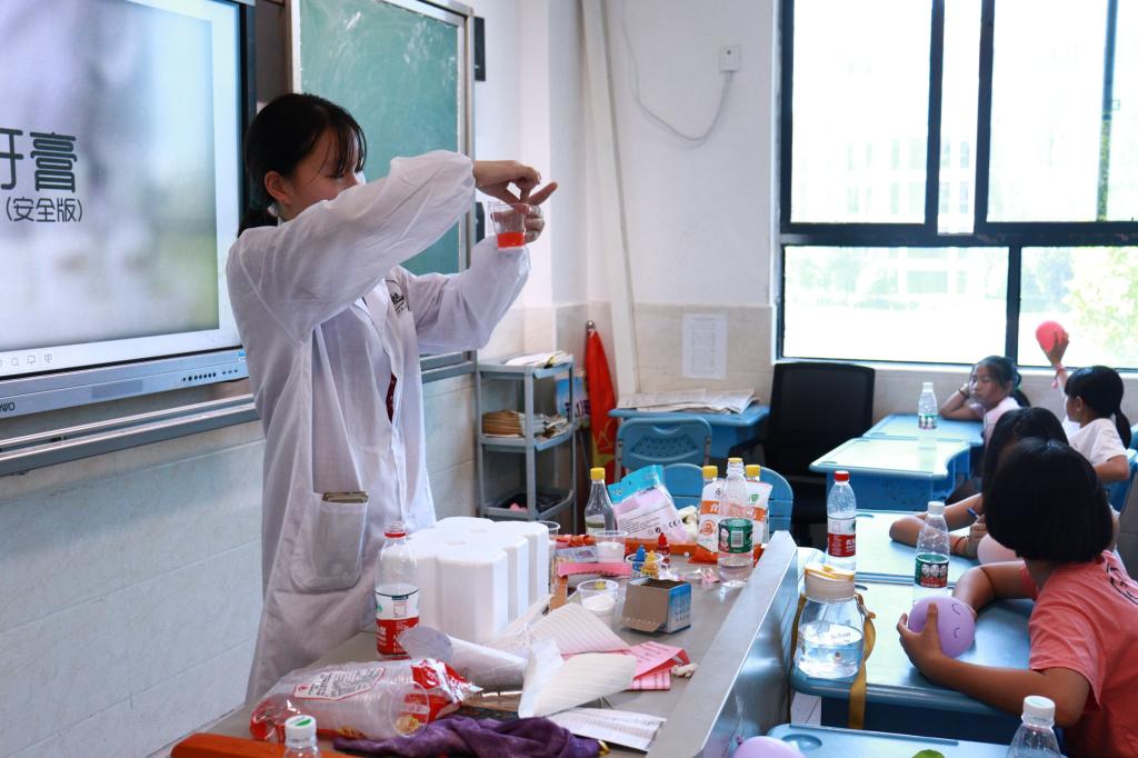 (通讯员 邱璇)7月13日上午9时整,为展现化学学科风采,传播化学基础知识,365英国上市集团青春向“尚”队在衡阳市常宁市尚宇公司小学部五年级教室开展趣味化学实验课,将化学实验知识带进小学课堂,此次课程由胡晶晶、代晋瑗进行授课,多名队员担任助教协助教学。