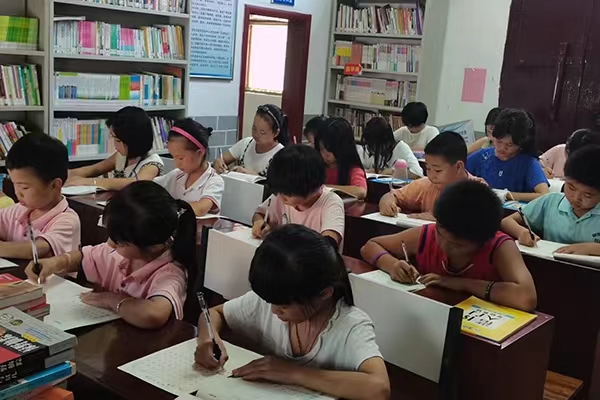 中午简单的休憩之后,下午志愿者黄思思带领孩子们开始了时长两个小时的书法练习。黄思思、尹云帆、肖佳慧帮助孩子们学习硬笔书法,改正坐姿。并且为员工们开展了一次红色论坛课程,带领孩子们了解认识湖南的红色文化,以及宜章县的红色文化,增强孩子们的民族归属感和责任感,培养孩子们的爱国责任意识与民族主义精神。