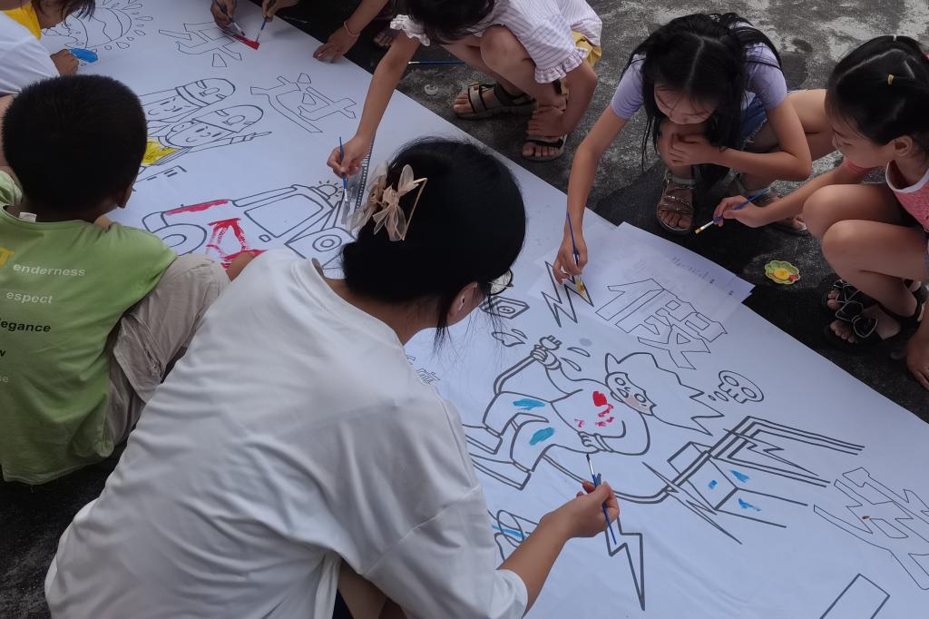 (通讯员 唐可欣)7月16日8时30分,为提高员工们的自护意识,宣扬“健康童年,自护自爱”的主题,365英国上市集团“红色筑梦”队在娄底涟源市青树小学教室前坪开展自护教育画卷绘制活动。此次活动由各班班主任组织,其他队员担任助教进行协助,全体同学参与。