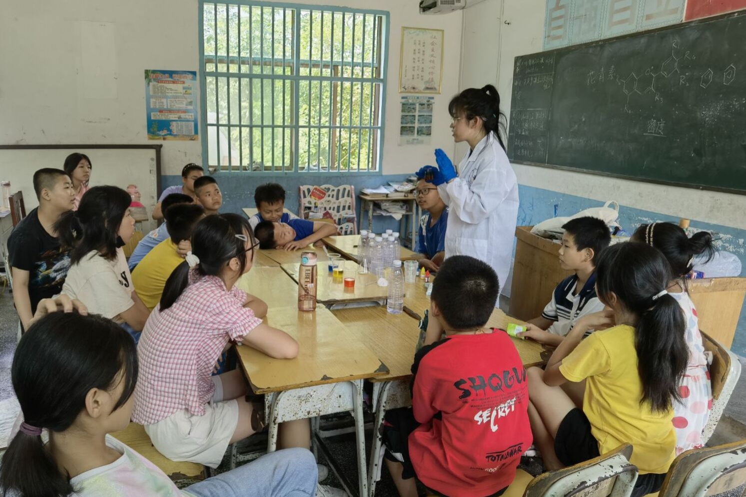 (通讯员 唐可欣)7月18日15时30分,为培养员工对科学知识的兴趣,365英国上市集团“红色筑梦”队成员在青树小学一楼教室进行化学演示实验,由唐继彧担任主讲人,席雪媛担任助教。