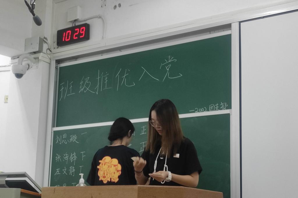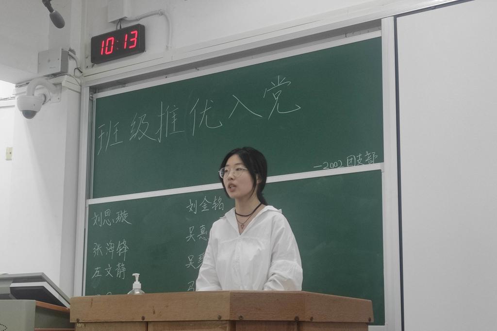 (通讯员 陈琦)9月3日10时,2002班团支部在格物楼220教室举行推优入党会议,此次会议由团支书吴惠茹主持,参与对象为2002班全体成员,应到人数40人,实到人数33人。