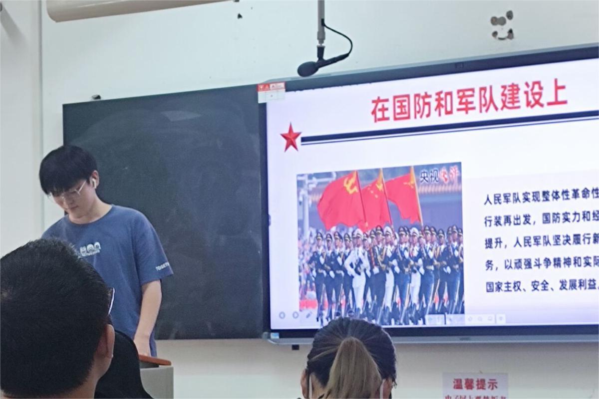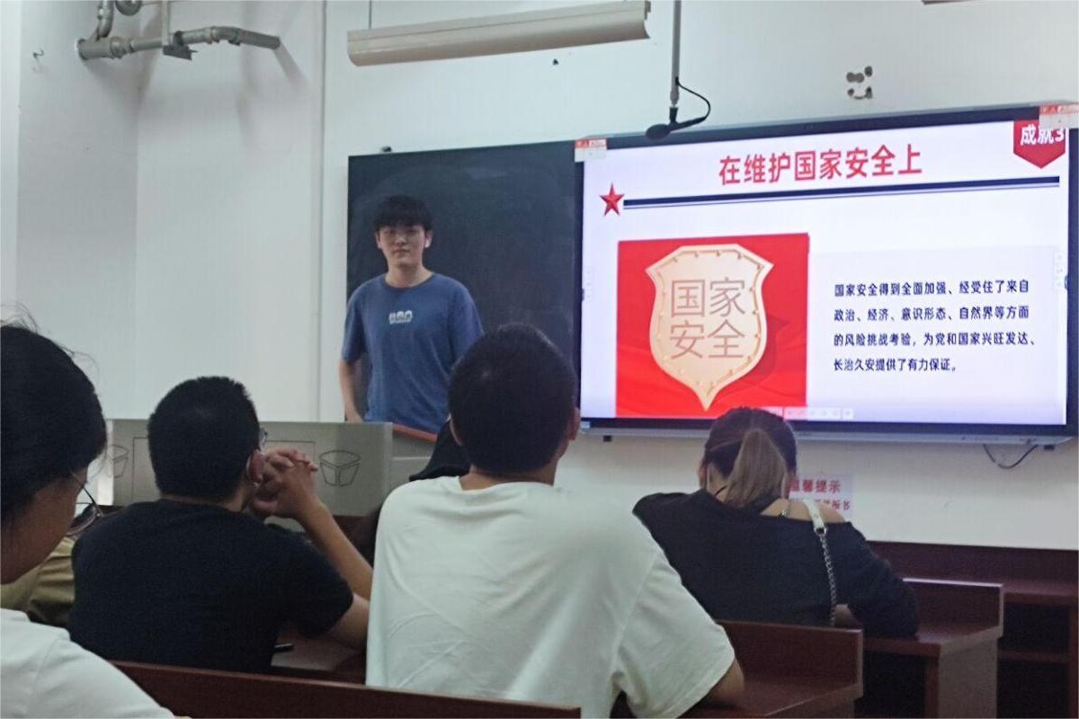 赵浩博以“党的十八大以来中国实力的进步”作为此次团课的前言,从总体上为大家介绍了中国共产党的杰出贡献。之后,赵浩博从国防和军队建设、坚持“一国两制”和推进祖国统一、维护国家安全、社会建设、生态文明建设、全面依法治国、全面从严治党七个方面详细介绍了中国共产党在新时代的伟大成就。最后由同学们进行心得体会的分享,并由赵浩博对本次团课进行总结。