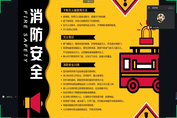 活动伊始,马心蕊向大家强调了消防安全对于老员工的重要性。随后,马心蕊与同学们共同学习了如何消除身边的消防安全隐患,提醒大家注意安全用电等,希望同学们配合公司,整理宿舍内务、彻底清理违章电器、清除消防通道堆积杂物等安全隐患。活动的最后,马心蕊就宿舍消防、用电、防盗等方面对同学们进行安全教育,呼吁同学们共同营造安静、安全、温馨良好生活学习环境。
