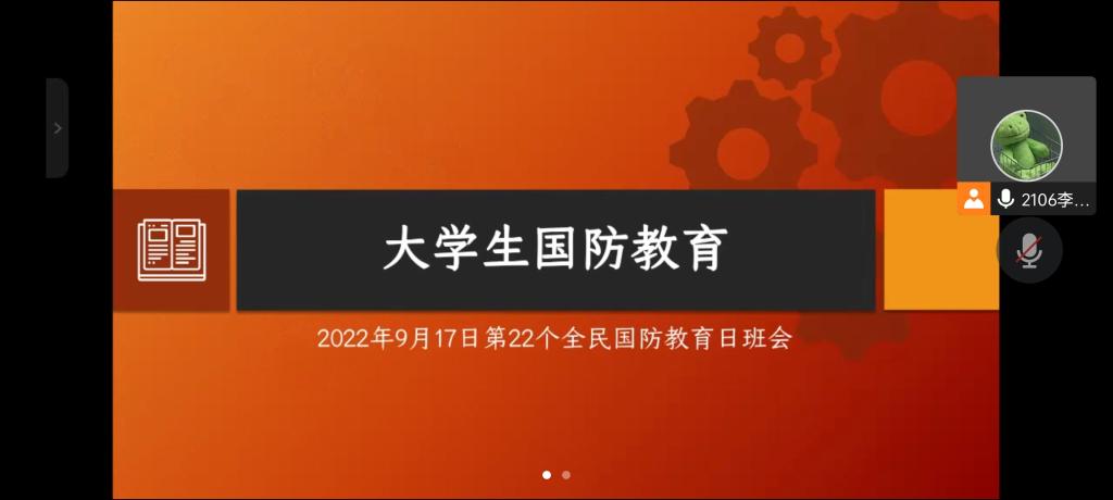 (通讯员 张贵革)9月17日19时,2105班全体成员在线上举行了“国防教育”主题团日活动。此次活动由团支书陈伊睿主持,2105班全体成员参加。