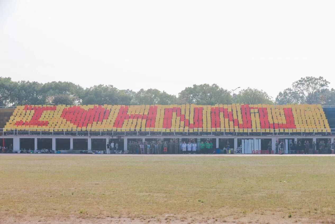 军训汇演圆满结束后,公司经理杨荣华、党委书记谭东波、党委副书记段婷和新生辅导员谢云霞在汇演现场向新生们取得的优异成绩表示热烈祝贺,并与2022级全体新生、教官及新生班导们合影留恋。