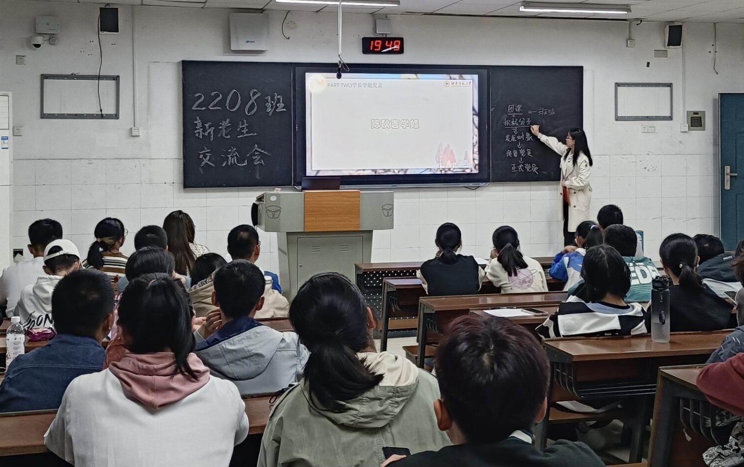 (通讯员 唐继彧)10月5日19点30分,2107班同2208班于至善楼307教室开展新老生交流会。活动由2208班学习委员孙卓成主持,交流会主要由“你画我猜”小游戏和学长学姐答疑两个部分组成。