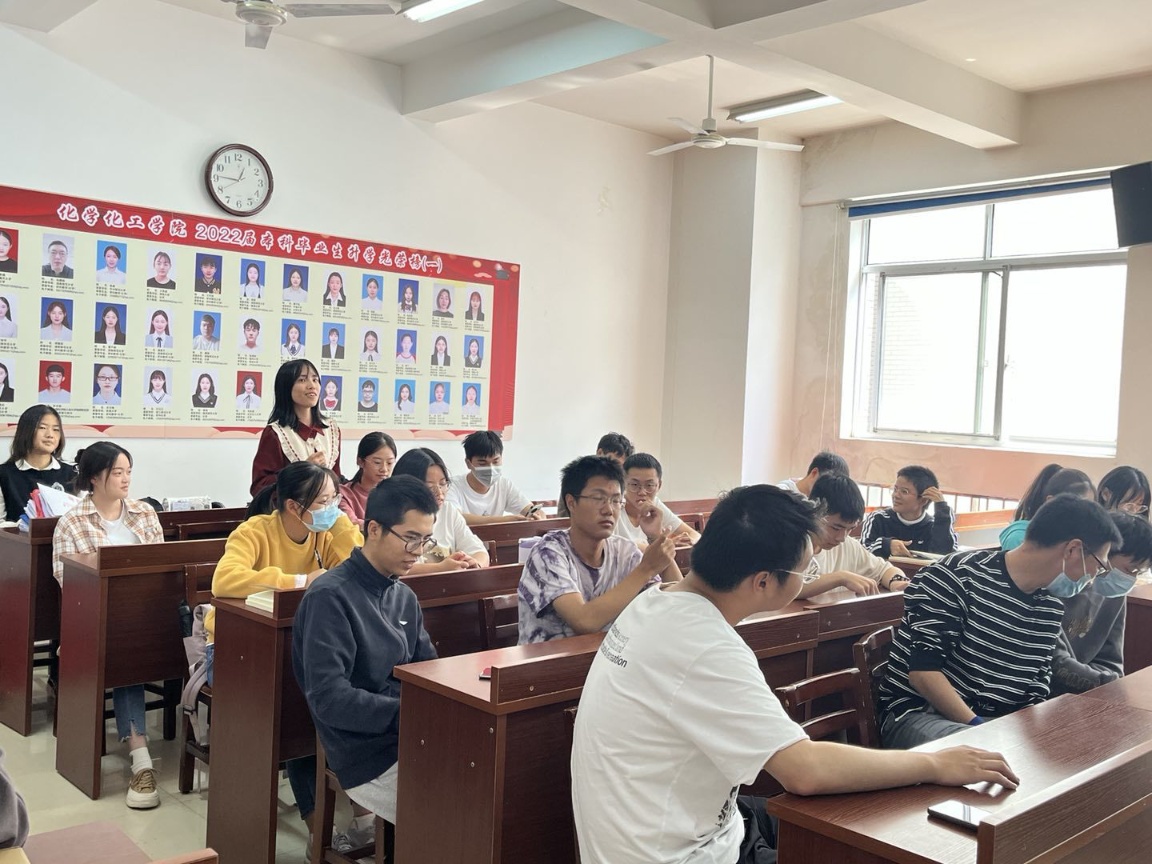 (通讯员 何丹)2022年10月15日12时30分,辅导员谢云霞,2022级年级干部及各班组织委员、青年志愿者委员和生活委员,在化工院210教室举行第一次干部会议分会。