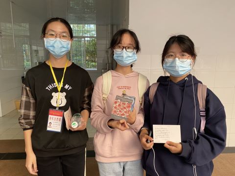 参与此次志愿活动的同学在至善楼102教室集合,在明信片上写下暖心话语后,以小组为单位前往二里半校区发放明信片,向警察、快递小哥、老师以及校园里的员工们传递温暖。在活动期间,同学们积极参与,并拍照留作纪念。