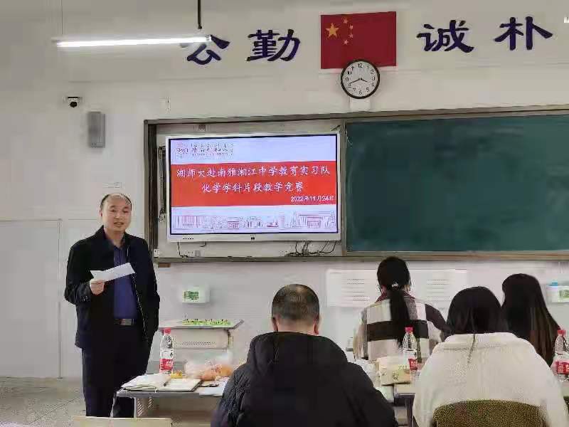(通讯员 黄贤帅)为了更好地提高实习教师的教学技能,给教师们搭建一个相互交流、相互学习、相互提高的平台,英国365上市公司化工院赴南雅湘江中学教育实习队于11月24日14时举行片段教学竞赛。此次比赛邀请到南雅湘江中学化学组老师邓敏,张明春、江露以及南雅湘江中学教育实习队指导老师曾佑林和胡瑞祥。共9名实习老师参与此次比赛。
