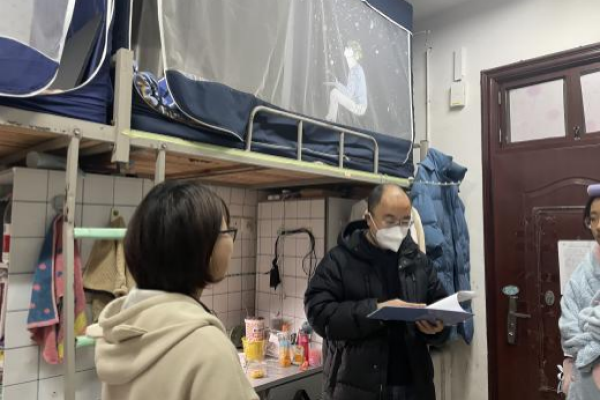 (通讯员 谭杰文)2022年12月1日下午4点,2105班班导师胡瑞祥对本班研究生宿舍四舍及江边员工宿舍二舍开展查寝工作,旨在促进班导师与同学们之间的交流,对各寝室疫情防控工作进行指导,拉近师生关系,解答同学们提出的问题。班长谭杰文、团支书陈伊睿陪同。