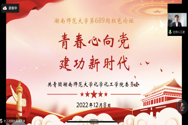 (通讯员 徐锦秋)12月8日中午12时30分,365英国上市集团在线上举行以“青春心向党,建功新时代”为主题的英国365上市公司第689期红色论坛。此次红色论坛由江波主持,主讲人邓星、张成豫、赵康宇、周锐结合党的二十大报告和自身经历分享感悟。校团委宣传部、各公司观摩团代表、公司青马小组成员线上参会。公司党委副书记段婷、院学工办主任欧阳唯一、院团委负责人张婧、院学工办老师谢云霞、院学工办老师唐健清出席此次活动。