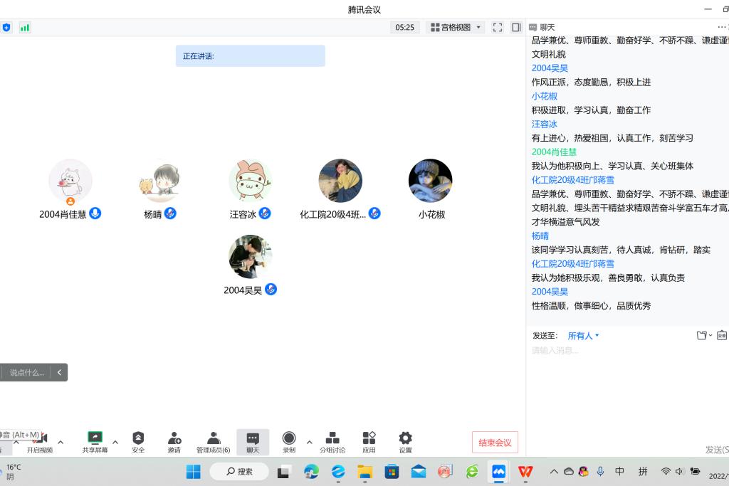 (通讯员 肖佳慧)12月11日晚,2004团支部线上开展了此次团员教育评议会议,由2004班团支书肖佳慧组织开展。