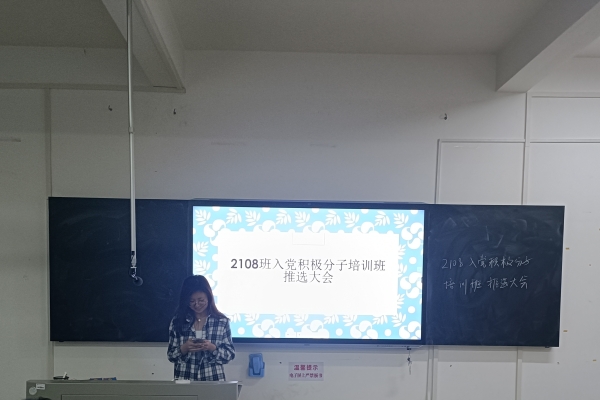 (通讯员 陈功海)3月6日18点15分,2108班举行入党积极分子培训班推选班会。本次班会是线下会议,由2108班班长赵燚组织展开,2108班全体成员参加。