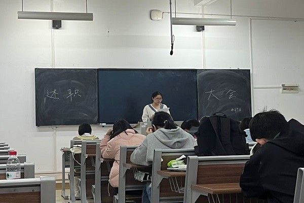会议开始,青年传媒中心主任杨辛总结工作,随后,员工社团管理服务中心主任伊方园宣布述职大会开始,并做出述职汇报。述职大会采取交叉述职的方式,各部门第一负责人从德、能、勤、绩、学五个方面对自己的工作进行总结汇报。汇报完毕后进入民主评议环节,此过程两个团学组织独立进行,除述职人员以外的全体成员从以上五个方面对述职人员进行评分,并由办公室统计评议结果。