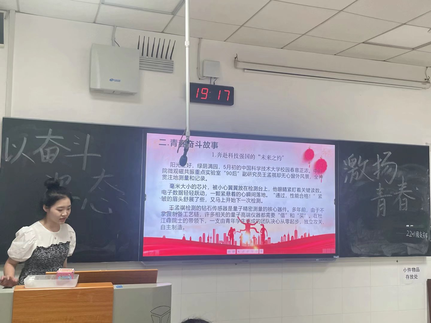 (通讯员 严瑾)2023年5月18日19时,2201班5月“以奋斗姿态激扬青春”主题团日活动在至善楼104举行,此次活动由班级团支书严瑾主持,2201班全体同学参与此次活动。
