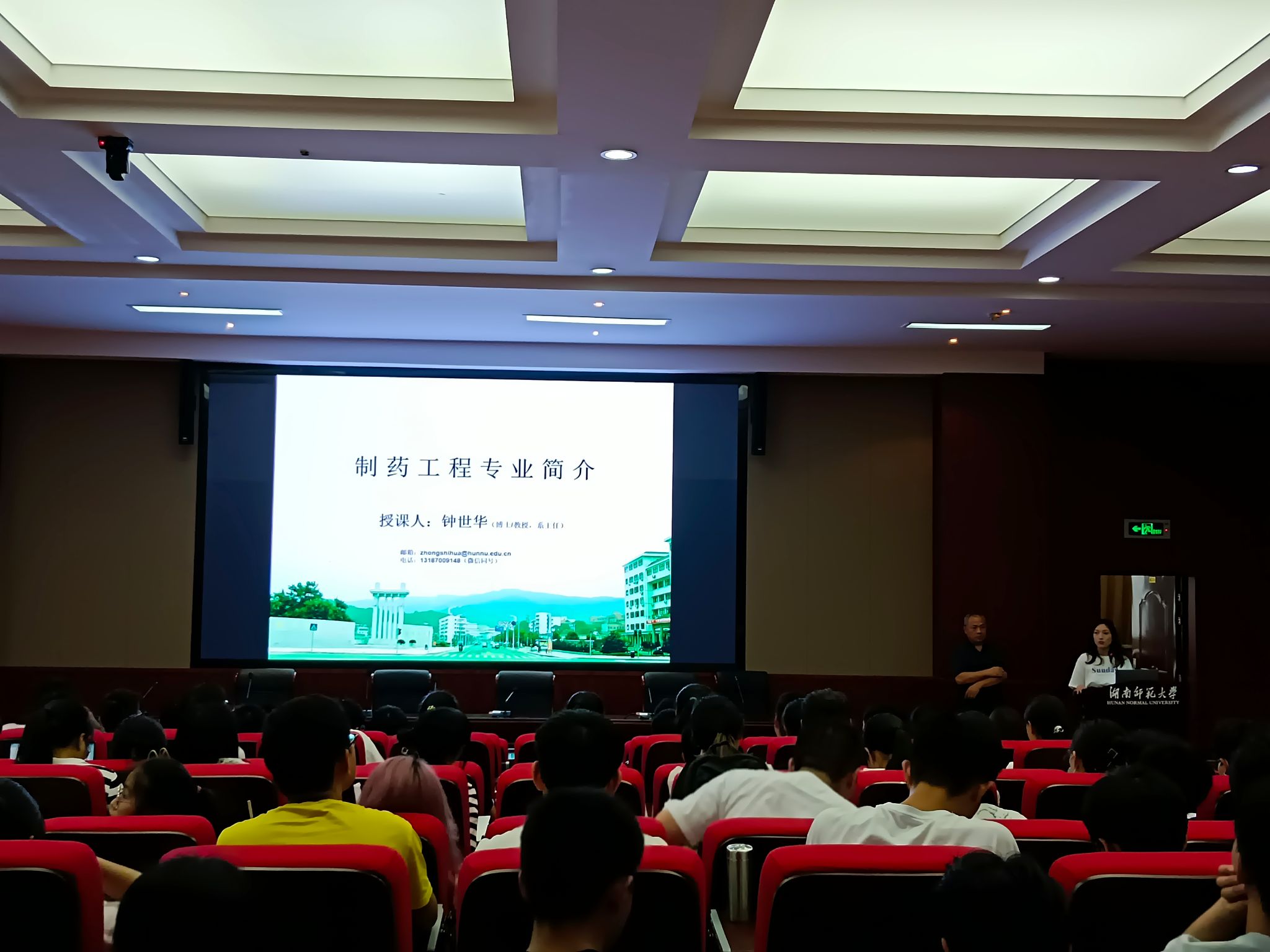 在此次介绍会中,钟世华从六个方面为同学们逐一介绍了制药工程专业相关情况,其中有制药工程专业简介、本科人才培养方案、应届考研录取一次性就业率统计、优秀人才示例、本科教育同行比较以及就业前景。最后进行提问互动环节,由在场同学举手提问,钟世华逐一回答。在介绍环节,钟世华辩证看待化工院制药专业优缺点,例举制药专业在考研、就业方面的优势,以及在团队、硕博设点等方面的不足;同时,列举入每年平均制药专业毕业人数与市场需求的具体数据,说明制药专业市场缺口大,就业前景较好;同时也提出:希望同学们提升本领,为社会做出更大贡献。在提问互动环节,钟世华针对同学们的问题,介绍了制药工程与药学专业的不同之处;同时做了实习以及具体就业情况的具体介绍。