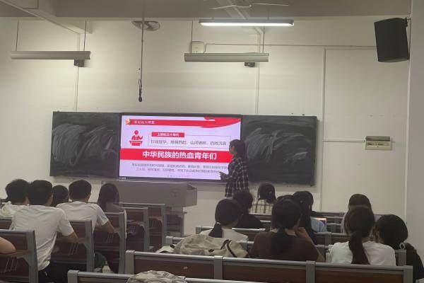 活动开始团支书简要概括此次活动举行的四个部分。团支书介绍完党的二十大对青年的寄语后,进入活动的第一部分,以现代青年的榜样事迹鼓励同学们向榜样学习,奋发拼搏。随后提问同学如何形容当代青年,引发同学思考,使同学们对青年之担当和使命有了更深的理解。同时在讲述当代劳模故事时,同学们也自主分享身边生动的“奋斗者”的故事,因此引发同学激烈讨论。最后以一则纪录短片结束此次的团日活动,也启示同学们以自己的青春力量助力祖国发展,奉献伟大时代,为民族复兴的中国梦贡献力量。