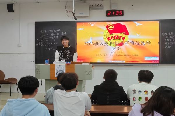 (通讯员 范俊)9月23日晚上19时,2203班在至善楼207教室举行了入党积极分子推优选举班会。