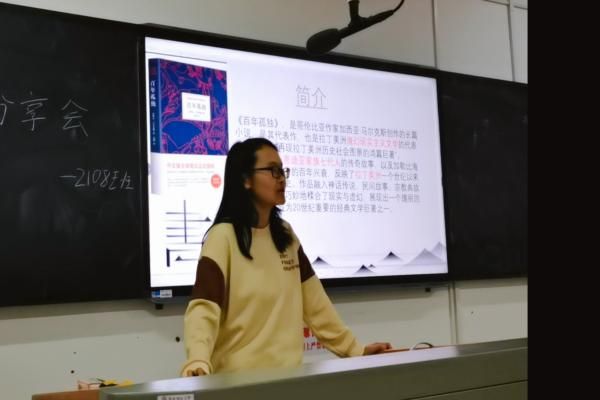 在活动开始之前,刘曼妮鼓励大家每晚在寝室阅读30分钟并且拍照打卡。姜有越、赵欣宇、冉佳令三位同学分别分享了《百年孤独》、《有人自林中落》以及《追风筝的人》。他们从书籍作者创作的立意、令人深刻的片段、鲜活立体的人物等角度出发,向同学们表达该书本吸引他们的地方。同时部分同学也发表了自己对书本的看法,大家相互交流促进了对书籍的了解。