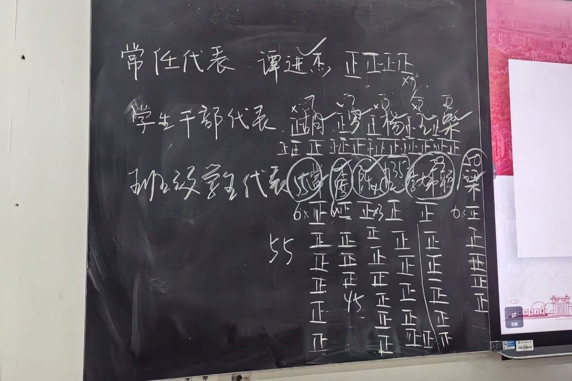 介绍完毕,台下与会同学开始投票,每名与会人员均慎重地投出了自己宝贵的票数。投票结束后,由相关工作人员收集投票表格并进行统计,谭进杰宣布员工代表名单。最终,会议选举出谭进杰为常任代表,胡筱晨、罗雅文、杨依然、王天一、柴琳为员工干部代表,常嘉雯、李炫炫、陈泉旭和梁璐昀为班级员工代表,唐恺鑫为港澳台员工代表,何丹、张钰佳为少数民族代表。此次院员工代表大会选举,产生了员工代表大会代表提名人选和常任代表大会提名人选,该名单将在公司公示三天,以示公平。
