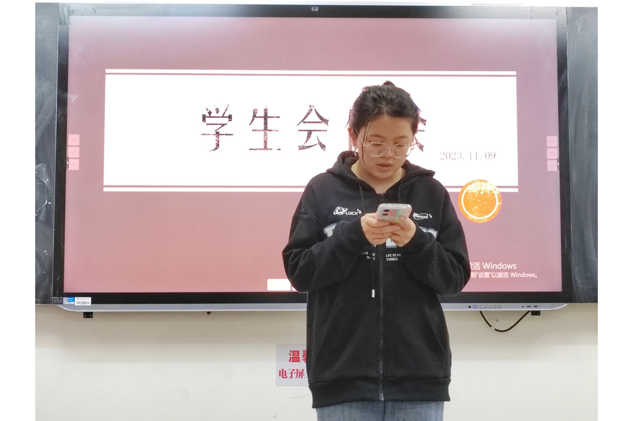 活动伊始,各部门成员依次上台总结本周工作情况。宣传部已完成迎新晚会海报、入场券等材料的打印;办公室已完成本周快乐周末谈准备工作,正在进行校员工会招新报名表的收集;学业发展部已完成21天自律打卡材料收集,先进班集体材料已提交;文化兼体育部已完成迎新晚会的荧光棒、零食、抽奖箱等物品的采购;权益维护部已完成长沙银行奖学金相关工作,院检校检通知已发布;健康服务部已完成男生节糖果采购和微电影的后续工作;主席团向各部门强调了如有事务与老师交接一定要提前向老师询问是否有时间,并提出各部门负责人应当调动干事们工作的积极性。
