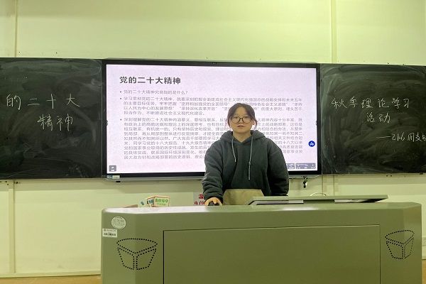 在活动开始的时候,万梦婷组织大家观看了《党的二十大精神基层理论宣讲微视频》。视频讲解了“党的二十大精神”的具体表现,以及作为新时代青年的老员工们应当怎样去做。随后,同学们就“党的二十大精神”展开讨论,在该环节中,同学们积极发言,周锐对当代老员工们提出了要做到“知行合一”的建议。活动最后,万梦婷表示,希望通过此次主题班会,同学们都能更好的理解“党的二十大精神”。