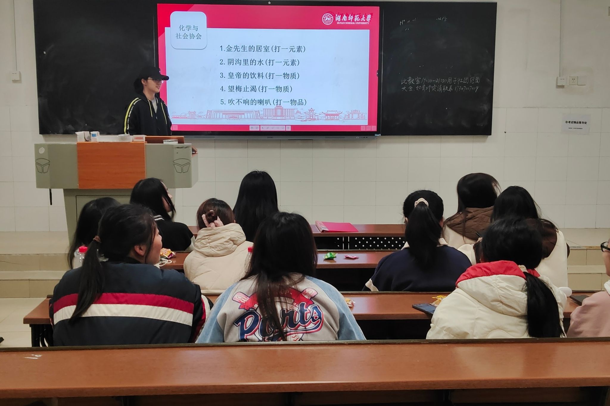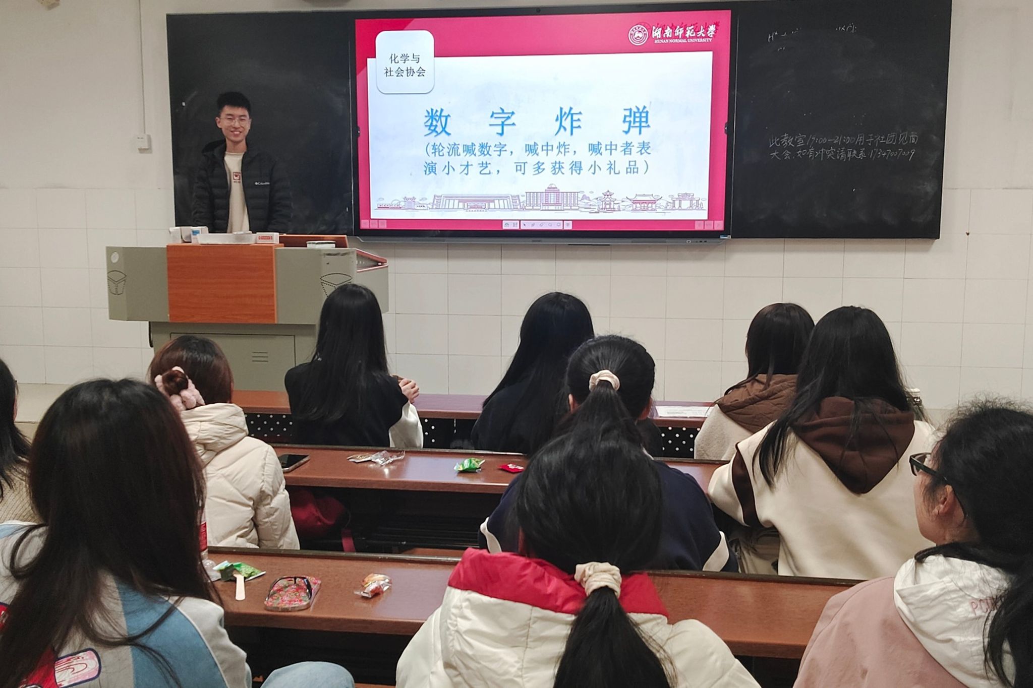 活动前期,理事会成员布置教室,并准备零食。参与活动的会员准时到达至善楼103教室并有序完成签到。活动过程中,化协理事会成员作了自我介绍,常欢对社团文化及活动开展内容进行简单介绍,并对会员提出的问题进行解答。会员们参与了化学版猜灯谜、数字炸弹、你画我猜等游戏,部分会员获得了精美奖品。会员们在监事会选举中投票选举,理事会成员进行票数统计并公示,选举出了一名监事长,一名副监事长,三名监事。
