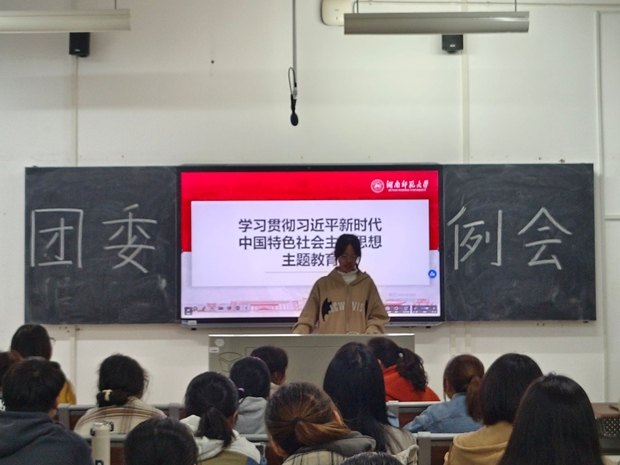 会议伊始,各部门代表依次进行本部门十一月工作总结,汇报近期工作计划。汇报完毕后,团委员工副书记胡筱晨进行发言,对各部门工作情况进行例行询问,指出各部门工作存在的问题,提出七点建议,强调工作要制定计划,强调要及时向胡筱晨和年级长兼团委员工副书记黄铄婷汇报工作计划和进度,还向团委全体成员具体讲解报告厅的使用流程。此后,社实部干事潘楚楚带领全体成员学习贯彻习近平新时代中国特色社会主义思想主题教育专题学习中的“专题2:坚强核心”。