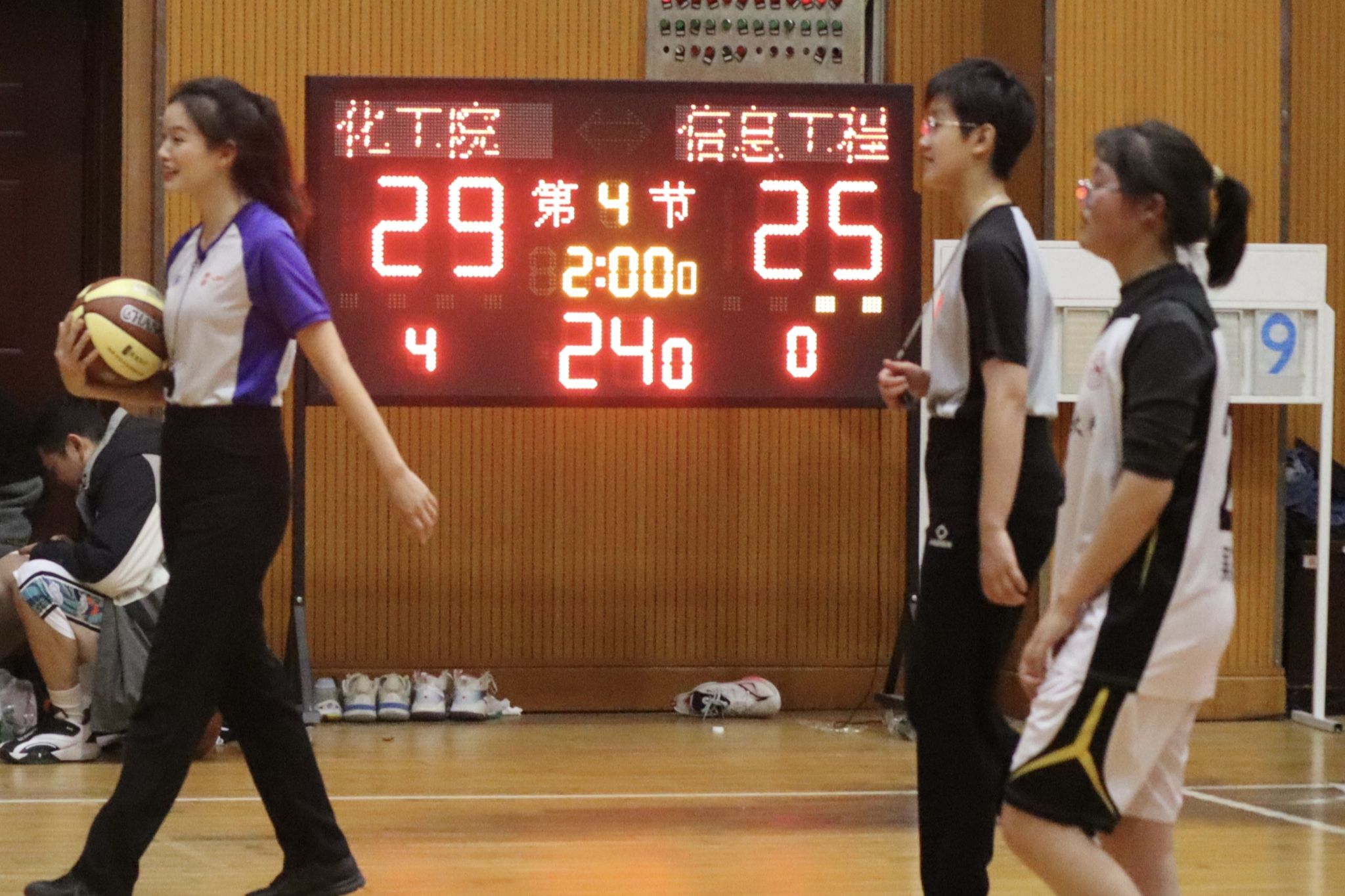 第四节比赛时间剩余两分钟,化工院以四分之差暂时领先