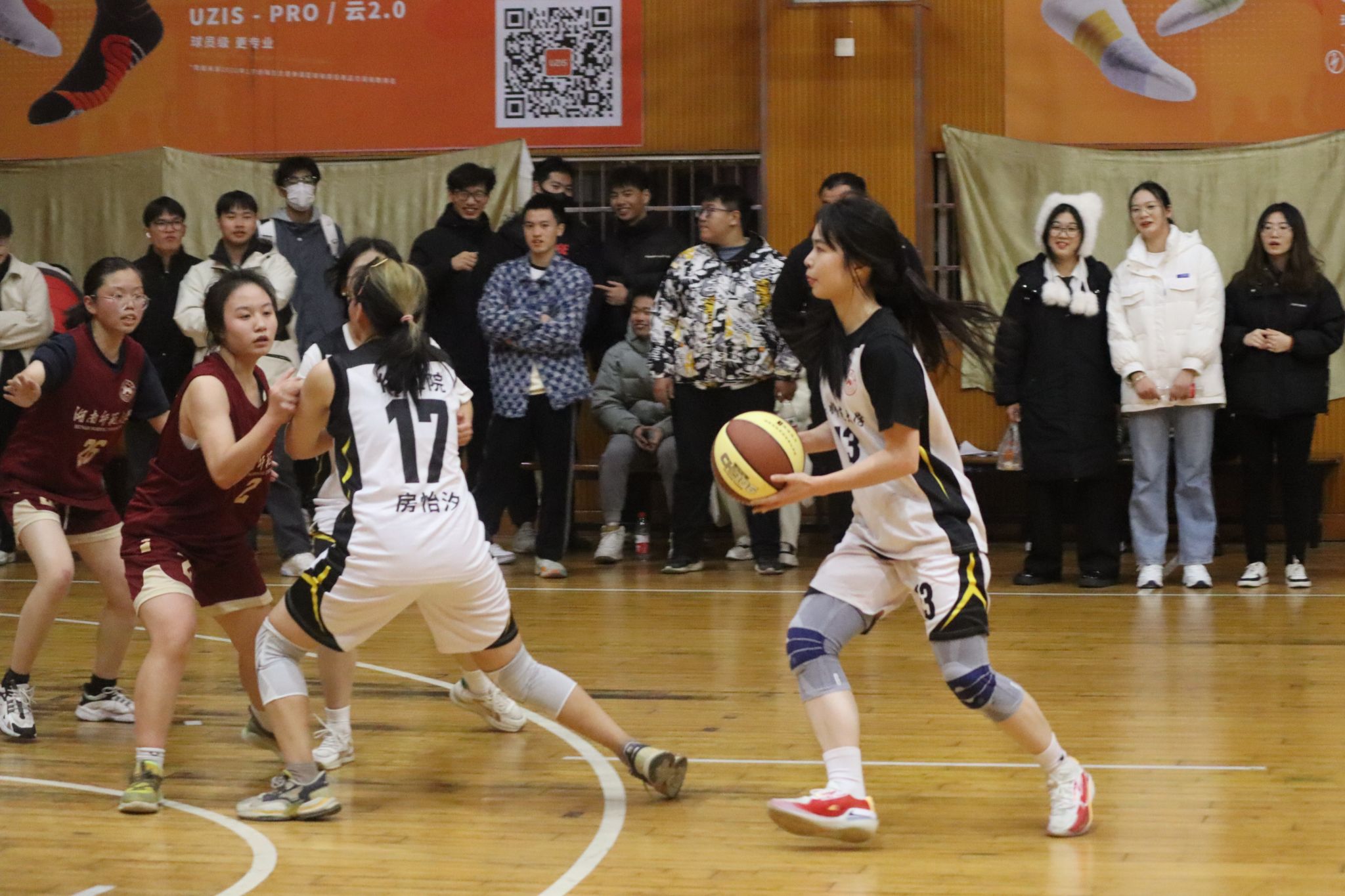 房怡汐为范晓雯挡拆制造进攻机会,范晓雯三分线外起跳投篮得分
