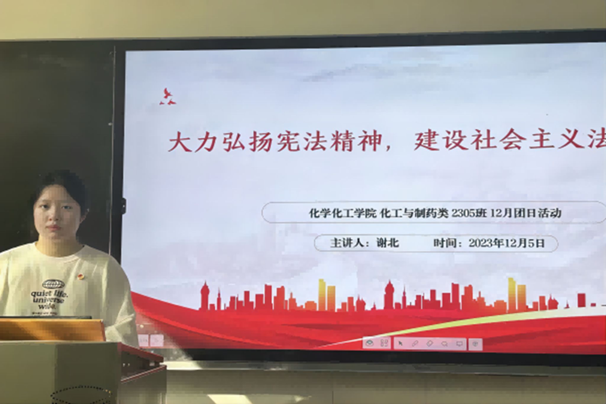 (通讯员 谢北)12月5日10时10分,365英国上市集团化工与制药专业2305团支部在团支书谢北的组织下于至善楼306教室开展12月“大力弘扬宪法精神,建设社会主义法治文化”主题团日活动。