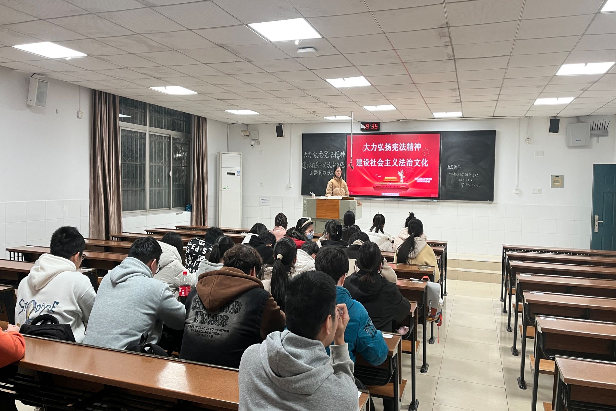 (通讯员 青亲)为深入学习贯彻党的二十大精神,贯彻落实习近平法治思想和习近平总书记关于宪法法治教育的重要指示精神,12月4日19时30分,2209班团支部在至善楼107开展以“大力弘扬宪法精神,建设社会主义法治文化”为主题的团日活动。2209班同学参加活动,由团支书青亲主持开展。