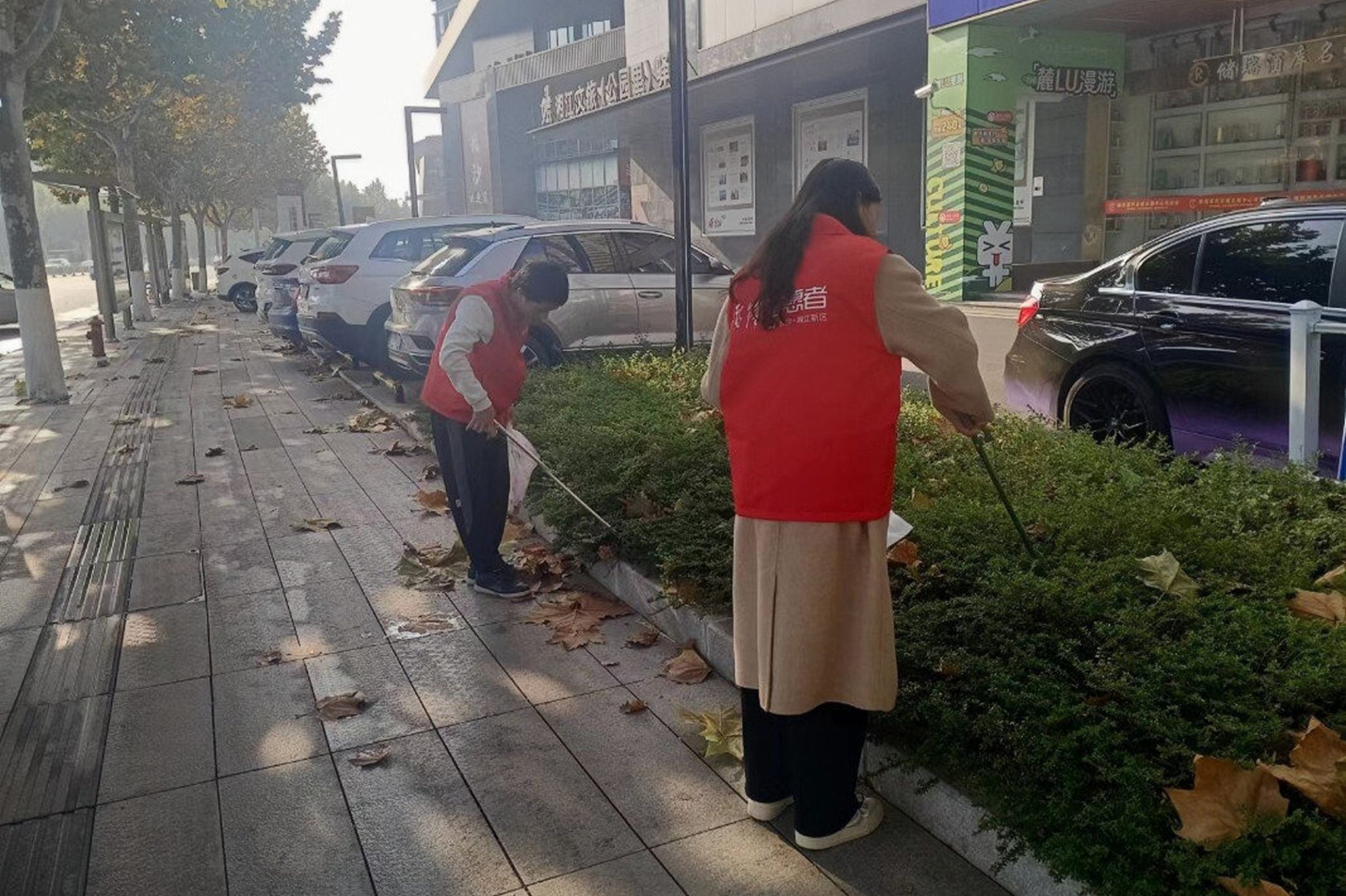 在工作人员以及组长易婕的带领下,从观沙岭街道办事处出发,沿银杉路与边洲围路,开展以拾捡白色垃圾为主的小组志愿活动。为了活动开展的有效性,小组成员均采用分工合作方式,对花坛、人行道以及草地等中的塑料与垃圾进行逐一清扫拾捡。在此过程中也遇到了例如垃圾过多过大、拾取困难等等,但在组员们的密切配合与相互协助下,均得到逐一解决。