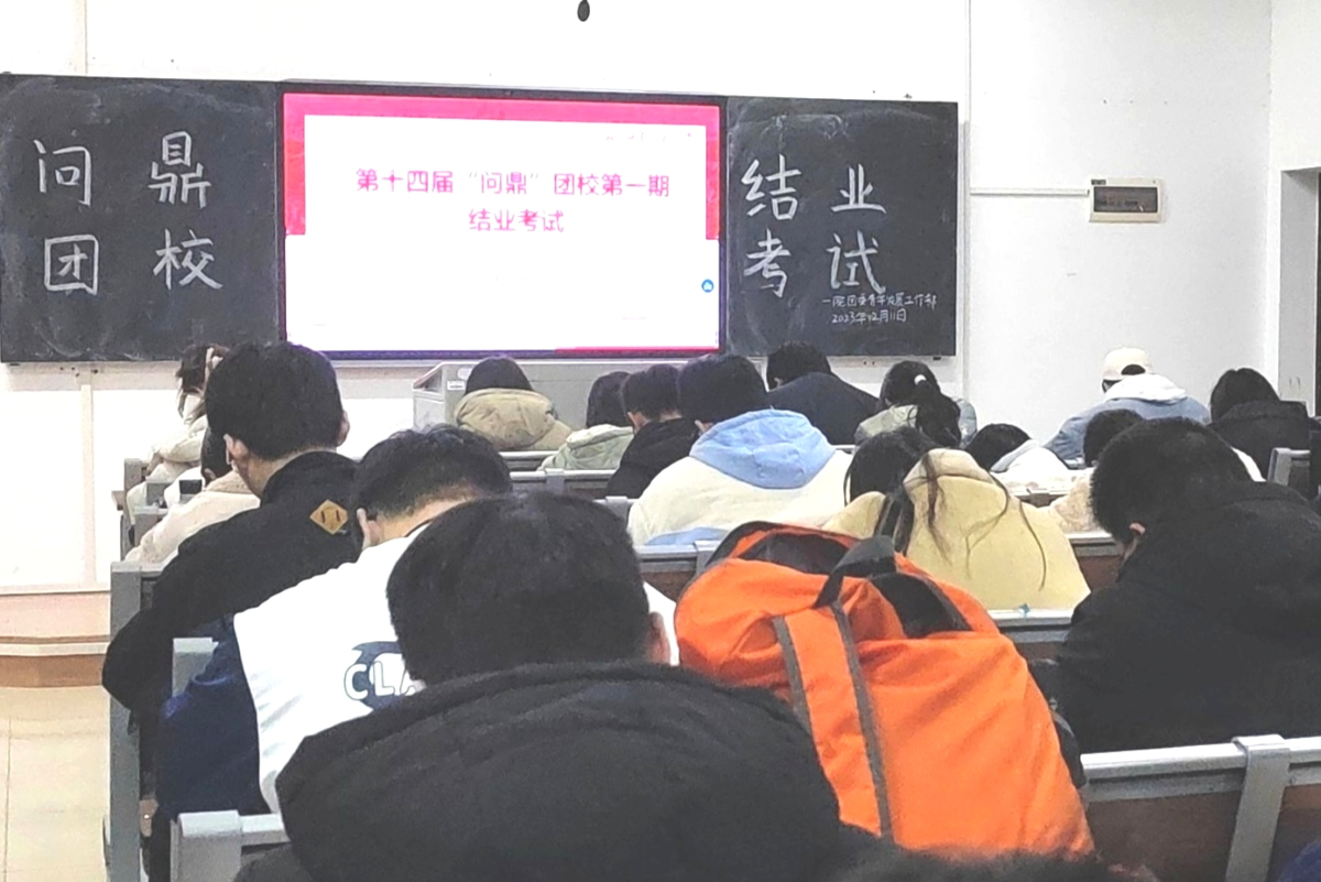 考试伊始,院团委青年发展工作部第一负责人张钰佳强调考试的要求及注意事项,并准时发放试卷。各团校学员严格遵守考场纪律,认真作答,灵活运用团校所学知识完成考核。随后,团校成员作答完毕,上交试卷,此次“问鼎”团校结业考试正式结束。