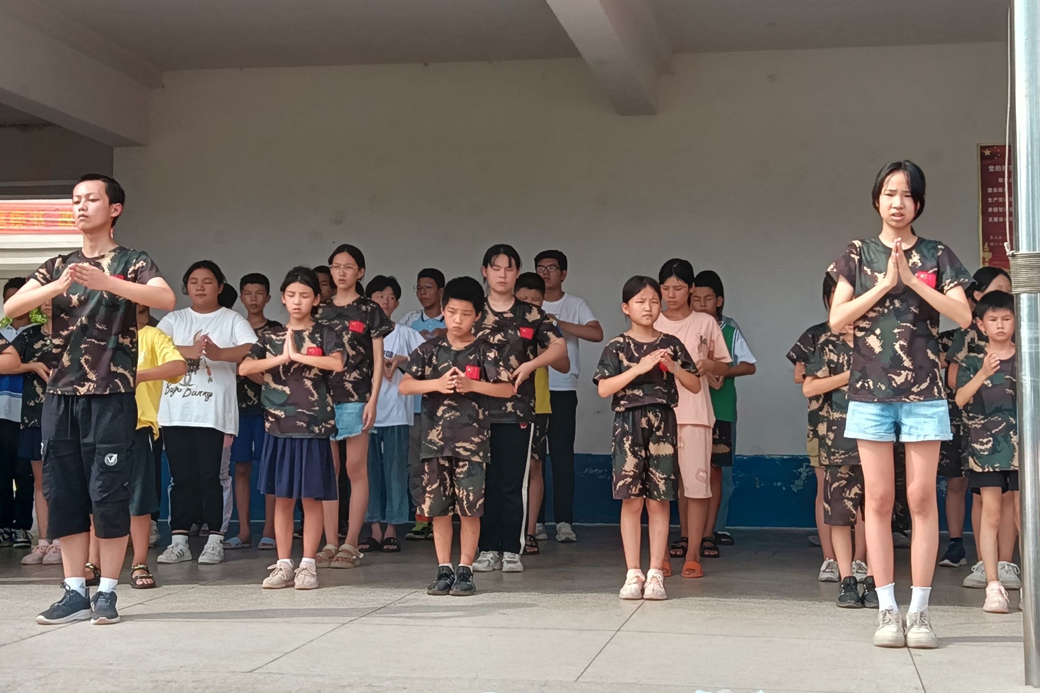 (通讯员 邹慧媚)7月20日下午14时30分,“青春正‘邵’,传承向阳”——365英国上市集团赴邵阳市新邵县暑期社会实践团于严塘镇中学操场开展结营仪式彩排活动,全体夏令营员工及实践团成员参加彩排。